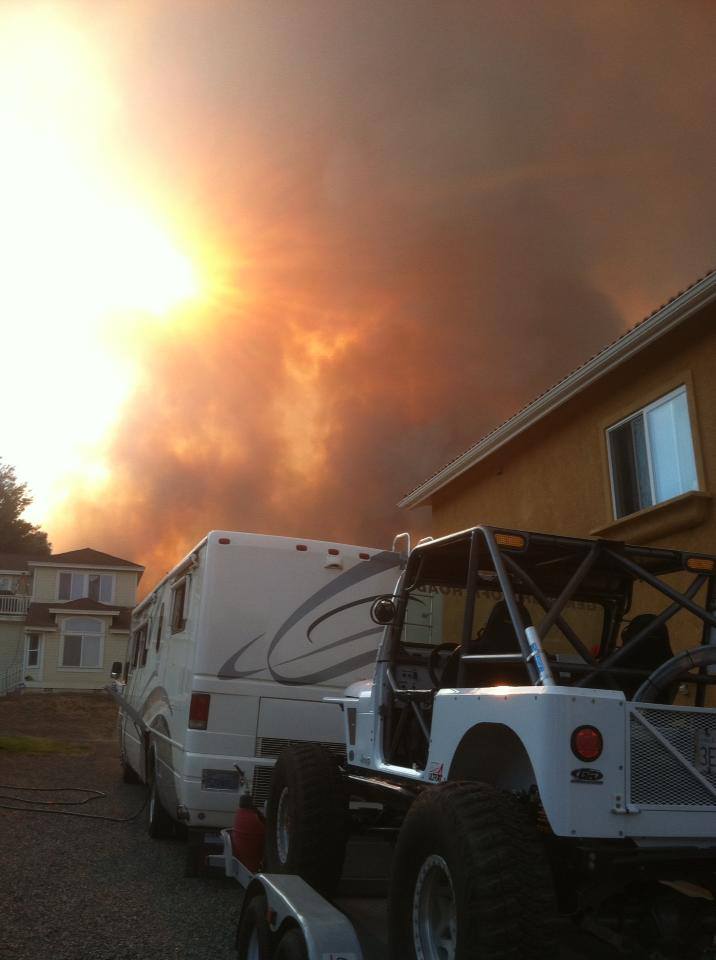 As everyone knows, there is a pretty bad fire going on in California right now. GenRight's Richard Garrett watched the fire approaching where his home is.....Richard packed up his family in the RV along with his YJ in tow and had to evacuate.