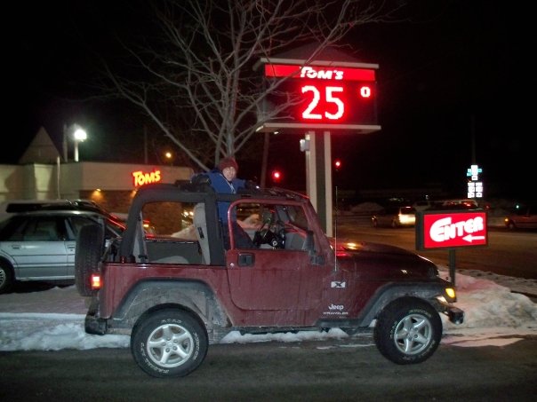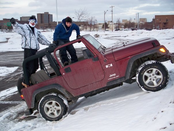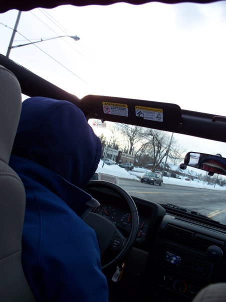 haha, thats the point, if it was a warm day, your tops would already be off. 25 degrees here, we drove for a good 3 hours probably. we didnt go for the points for minimal clothing, way too cold for 3 hours. my two buddies caught the jeep bug i think, they were standin up waving at all the other jeeps:lol: well, heres a few of my pics, i tried to get the doors off but all it did when i tried to lift them off was lift the whole jeep:x i tried gettin thm off a couple months ago, nothin then too. anyway here are a few pics:lol: