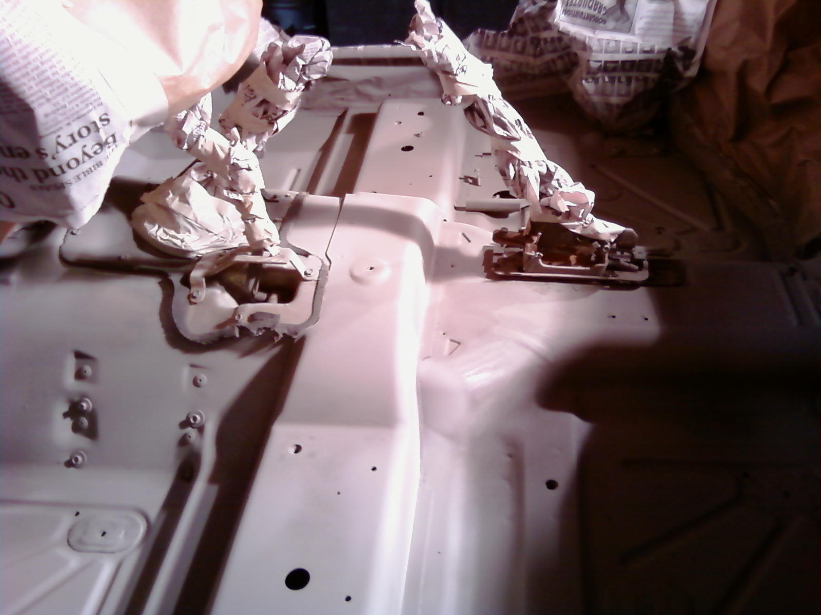 Only the bottom part though, back part still had carpet and is still good as new, front never had carpet, and plus i could only afford one gallon of the stuff. here's some photos, first is all sanded down, sand blasted and patched up holes second is primer, tomorrow will be the finish, i hope