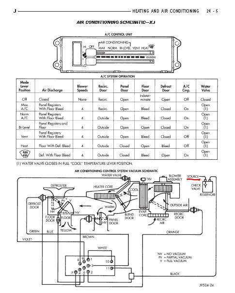 All the air, both a/c and heat, in the old '96 XJ is vented up at the windshield now no matter what position the control levers are in. I assume its b/c of a cable or something that's come unattached. What's the most likely cause of such a disastrous occurrence and how much trouble is it to get at?
